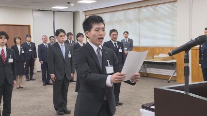新年度初日のきょう、遠野市役所では部長級等辞令交付式や新採用職員への辞令交付などが行われました。このうち、とぴあ庁舎では定期人事異動に伴う部長級等への辞令交付が行われ、多田市長から3人の市職員に辞令が手渡されました。多田市長は辞令を交付した3人に、「きょうから心機一転、全体に目を配りながらチームワーク良く進んでいただきたいです」と、訓示を述べました。このあと本庁舎では今年度新たに採用された市職員10人への辞令交付が行われました。式では多田市長や新田眞一消防長から、「がんばってください」「よろしくお願いします」などの言葉と共に、辞令が手渡されました。少し緊張したような表情で辞令を受け取った新採用職員たちはその場で宣誓書を読み上げ、誠実かつ公正に職務へあたることを誓いました。多田市長は訓示で「きょうから遠野市役所の職員として頑張っていただき、一緒にいい遠野市にしていきましょう」と話し、歓迎しました。式の最後には各部署の部長と課長が紹介され、新採用職員たちは「よろしくお願いします」と、力強くあいさつしていました。なお遠野市は325人体制で令和8年度のスタートを切りました。Copyright(C) TonoCableTelevision. All rights reserved.