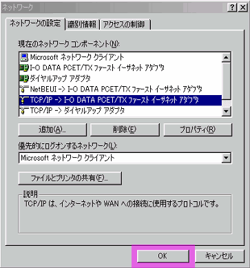 (上の図は一例を示しています。表示内容はご使用のパソコンやLANボード等によって異なります。)