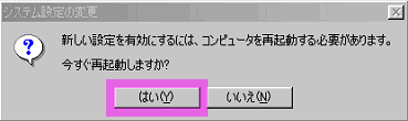 今すぐ再起動するか問い合わせてきますので、[はい]をクリックしてください。