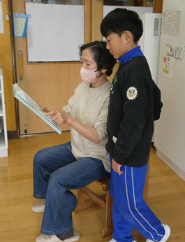語り・九九検定 11月26日と12月3日の2回にわたり、学校運営協議会綾織小部会や、学校ボランティア「綾小お助け隊」の皆さんにご協力いただき、2年生の「九九検定」と3年生の「子ども語り部練習」を行いました。2年生は励ましていただきながら九九を唱え、随分スラスラ言えるようになりました。3年生は、相手意識をもって語ることやイントネーションなどについてアドバイスをいただき、「語り部認定会」に向け更にやる気を高めました。 地域の方々に支えていただき、子どもたちは意欲をもって学習に取り組み、力をつけています。ありがとうございます。