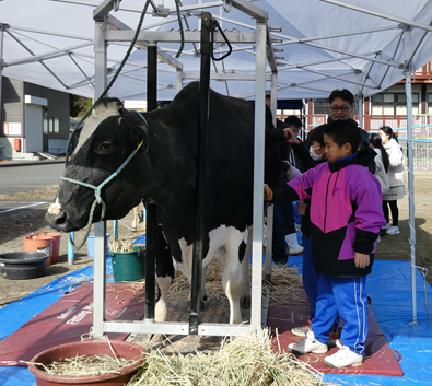 牛乳は苦手な子もいますが、酪農家の方の「お母さん牛が頑張って作っている血の通った食べ物。牛乳が苦手な人も頑張って飲んでくださいね」というお話にどの子もうなずいていました。生き物との触れ合いによる「癒やし」はもちろんのこと、牛のあたたかさを実感したり子牛の心音を聞いたりするなど「命」を感じることができ、多くの学びのあった時間になりました。