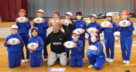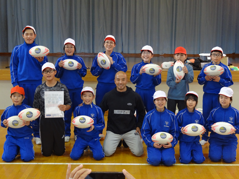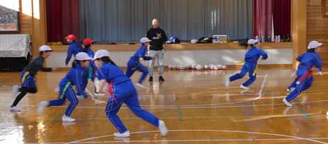 タグラグビー 11月12日(水)の5校時3・4年生、6校時5・6年生を対象に「タグラグビー出前授業」が実施されました。釜石シーウェイブスから長田剛(ながたたけし)さんが講師としていらっしゃいました。楕円型のラグビーボールに慣れること、グループでのリレー、ボールを持った子を追いかけてタグをとること…など楽しみながら様々な活動をしました。長田さんからは「仲間と協力すること」「ルールを守ること」が大事というお話があり、スポーツだけではなく、日常生活でも大切なことを学ぶことができました。