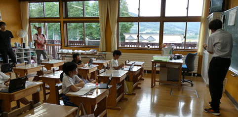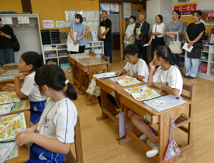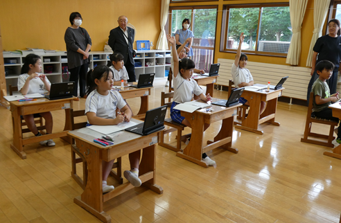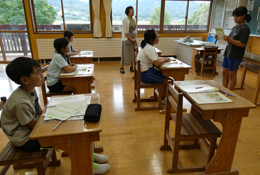 授業参観は、1年生は学活、2・3年生は複式の算数、4年生、5年生は外国語、6年生は国語の学習を行い、保護者や学校運営協議会委員の皆さんに子どもたちが頑張っている様子をご覧いただくことができました。