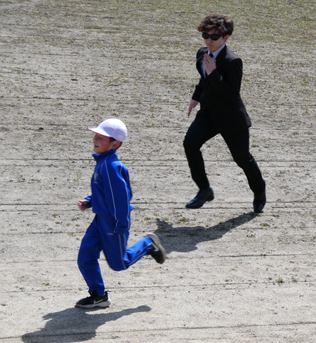 4月9日(木)に体育の授業開きで、全校で「逃走中」を行いました。3人のハンター登場に子どもたちは大興奮です。力いっぱい逃走しました。もちろん、ハンターも負けてはいません。必死で追いかけます。でも、やはり体力が…。途中から「6年生ハンター」も加わり、さらにヒートアップしました。