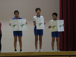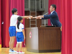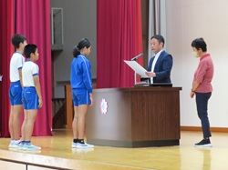 表彰朝会 10月6日に市内陸上記録会と読感想文コンクールの表彰朝会がありました。陸上記録会では、多くの選手が全力を出し切り多くの賞状やメダルを手にすることができました。読書感想文コンクールでも、優秀な文才を光らせ賞状を受け取ることができました。