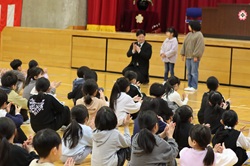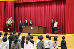 新しい先生方との出会いを迎えた紹介式・始業式 4月7日に紹介式・始業式を行いました。体育館には新しい学年を迎えた子ども達が集まり、落ち着いた雰囲気の中で式が始まりました。 紹介式では、今年度より本校に着任された先生方の紹介があり、子ども達は真剣な表情でお話を聞いていました。そして、6年生の代表の児童から新しい先生方に向けて温かい歓迎の挨拶がありました。また、転校してきた子ども達の紹介もあり、温かい拍手で迎えることができました。 続く始業式では、校長先生からの目標や過ごし方のお話があり、子ども達はうなづきながら耳を傾けていました。式の最後には、担任発表に胸を弾ませる姿や新しい一年への期待に満ちた表情が見られました。