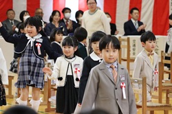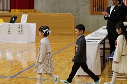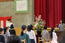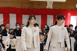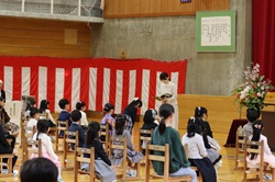 期待と緊張の表情で迎えた入学式 4月7日に入学式を行いました。新一年生は少し緊張した面持ちながらも、名前を呼ばれると元気に返事をし、会場は温かな拍手が広がりました。 式では、校長先生から励ましと歓迎の言葉が贈られました。また、6年生の代表児童からは新1年生を優しく見守っていくことが伝えられ、会場は優しい雰囲気に包まれました。新一年生は初めての小学校でもたくさんの人のお話をしっかり聞き、返事をしました。立派で頼もしい姿をみせてくれました。