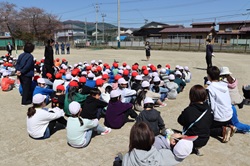 訓練の最後には、3人の代表の児童がそれぞれ学びや気づきを発表しました。また、6年生の代表児童からは、消防署の方々へ向けて感謝の言葉が述べられ、全校でお礼をしました。