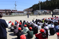 訓練では、放送の合図とともに子ども達は落ち着いて素早く避難し、全員が安全に校庭へ集合することができました。