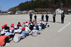 交通安全教室で、安全な行動について理解を深めました 4月13日に交通安全教室を行いました。警察署の方々、交通指導員、PTA児童育成委員の方々の協力の下、日常生活で大切な交通ルールや安全な行動について、学年に応じた内容で指導していただきました。 1~3年生は学校周辺を歩き、正しい歩き方や横断歩道の渡り方を学びました。4年生は校庭で、自転車の基本的な乗り方について指導を受けました。5、6年生は学校周辺を自転車で走行し、交通ルールを守った安全な乗り方を実践的に学びました。 最後には、各学年の代表の児童が今日の学びとお礼の言葉を述べました。