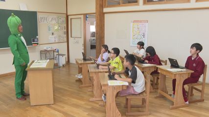 達曽部小学校で先週金曜日、正しい姿勢と健康をテーマにした演劇の収録が行われました。達曽部小学校の保健委員会は委員会活動の一環として全校児童に健康について考えてもらおうと毎年演劇に取り組んでいます。この日は、来月11日の委員会発表で全校児童に向けて上映するビデオ制作ため、演劇の収録が行われました。ことしは「正しい姿勢で心も体も健康に!」をテーマに、保健委員会の児童6人に加え以前児童と一緒に調理実習を共にするなどの交流がある、お笑いタレントのよこっちピーマンさんも参加して撮影が行われました。児童たちは、よこっちピーマンさんのコミカルな演技やギャグを交えた親しみやすい演技を交えて、正しい姿勢が心や体の健康につながることを楽しく紹介していました。