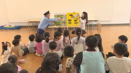 全国地域安全運動の一環として、警察による防犯絵本の読み聞かせが今週火曜日から市内の保育園で行われています。このうち上郷保育園ではおととい水曜日、上郷駐在所の森岩春雄所長が3歳から5歳の園児たちに防犯絵本を読み聞かせました。森岩所長は知らない人から声をかけられたときの対処をはじめ、犯罪や思わぬ事故に巻き込まれないようにするためのポイントを伝えていました。園児たちは自分自身を守るために大切な約束ごとを学び、何か困ったときは身近な大人を頼ったり相談したりすることを誓っていました。なお防犯絵本の読み聞かせは、上郷保育園を含む市内8つの保育園で実施され今月23日まで続きます。