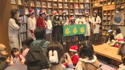 こども本の森遠野で未就学児向けのクリスマスパーティーが今週日曜日に開かれました。こども本の森遠野では毎月未就学児とその家族向けのイベントを開催しています。クリスマスパーティーでは初めにこどもスタッフによる絵本の読み聞かせが行われました。続いて行われた紙コップと鈴を使ったハンドベル作りでは、子どもたちが家族と一緒に色合いやシールを貼る位置を考えながら飾り付けていました。このあと本の森のスタッフとこどもスタッフが「きよしこの夜」をハンドベルで演奏し、クリスマスムードを高めていました。そしてイベントの最後にはサンタさんからクリスマスプレゼントが贈られ、受け取った子どもたちはうれしそうな表情を浮かべていました。なお次回は節分を前にした来年1月25日・日曜日に「まめまきごっこ」を開催する予定です。申し込みや問い合わせはこども本の森遠野рU3―3003までお願いします。