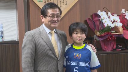 市内の少年サッカークラブに所属する小学生が、去年12月にスペインで開催された国際大会に出場し、その様子を市長に報告しました。この日、多田市長を表敬訪問したのはマリオヴィトーリアFCに所属する遠野北小学校の4年生菊池康介さんです。菊池さんは去年12月6日から2日間、スペイン・バルセロナで開催されたサッカーの国際大会「カイハンインターナショナルカップ」に出場しました。この国際大会に出場するメンバー12人は、全国6つの地区で実施されたセレクションを通った一握りの選手たちで、東北地区からは唯一、菊池さんが選出されました。この大会で菊池さんは、世界トップレベルのクラブチームに所属する体格の大きい選手や高い技術を持った選手たちと競り合う貴重な経験を積むことができたと振り返っていました。また試合を重ねていく中でスピードやキックの精度など自分自身の持ち味を発揮し、チームメンバーから信頼を勝ち取っていったそうです。報告を受けた多田市長は「すばらしい経験をしてきましたね。菊池さんは遠野の自慢です。これからも注目しています」と話し、今後の活躍に期待を寄せていました。