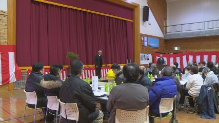 松崎町新年交流会が今週25日・日曜日総合福祉センターで開かれ、出席した町民たちが親睦を深めました。松崎町新年交流会は都山流尺八「遠竹会」の演奏と太田幸子さんの詩吟で華やかに幕を開けました。この交流会は町民が一堂に会して新年の抱負を語り合い交流を深めようと松崎町未来づくり協議会が毎年開催しています。はじめに松崎町未来づくり協議会の村上敏実会長が、「スローガンである笑顔あふれる松崎の実現に向けてことし1年頑張っていきたい」とあいさつしました。続いて、今年度の「松崎町交通安全標語コンクール」の表彰式が行われました。応募総数93点の中から選ばれた金賞・銀賞・銅賞が紹介され、会場では、銀賞を受賞した遠野北小学校1年の村上ほの香さんに賞状が贈られました。この後乾杯に入ると参加した町民たちは食事やお酒を楽しみながら互いに近況を語り合っていました。会の最後には町民から寄せられた健康器具やりんごジュースセットなど豪華景品があたるお楽しみ抽選会も行われ、ことし最初の運試しに会場は、盛り上がりを見せていました。