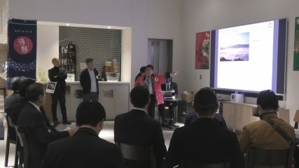 TonotheFuture「遠野のこれからを、乾杯ではじめよう。」が先月27日・火曜日東京の八重洲で開かれた様子が届きましたのでお伝えします。この催しは、首都圏の民間事業者などを対象に遠野市が主催したイベントで、観光施設などの再構築に向けたアイデアや資金を募ることを目的に行われました。この日は、首都圏を中心に35の民間事業者から43人が参加し、多田市長が市の概要や観光施設などの現状と課題についてプレゼンテーションしました。また会場では、遠野産食材を使用した料理や日本酒、クラフトビール、ホップソーダなどの飲み物を堪能してもらいながら、郷土芸能や自然・風景といった遠野の魅力を発信してきたということです。市では、今後も民間事業者などから広くアイデアを集めながら意見交換や対話を重ね、市の計画を連動させながら事業に取り組んでいくとしています。