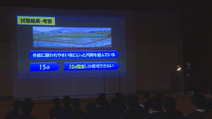 緑峰高校の課題研究発表会がおととい水曜日に実施され、生徒たちが1年間の学習の成果を発表しました。この発表会は生産技術科と情報処理科の研究活動について相互理解を深め、「農業」と「商業」の融合を図るとともに、生徒たちの学習の成果を地域へ発信する場にしようと毎年行われています。初めに生産技術科の生徒が、自分たちで作ったスライドを使いながら発表しました。今年度は岩手県産米の新品種「白銀のひかり」をアイガモ農法で栽培したグループや、遠野の伝統野菜早池峰菜の栽培方法を研究したグループなど、1・2年生4グループが発表しました。また情報処理科の生徒たちは「高校生ができる多文化共生による地域活性化への挑戦」や、台湾のスーパーで開かれた遠野の物産展をテーマに発表しました。すべての発表が終わったあと多田市長は「課題を一生懸命に探求し、その過程で学んだことが身になっていますね。皆さんは遠野市の宝です」と講評し、生徒たちのさらなる成長に期待を寄せていました。