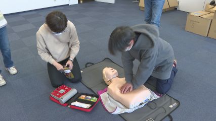 本格的な観光シーズンを迎える前に、お客様の安心安全を守る行動、救命に備えるための危機管理講習会がきょう、総合防災センターで開かれました。この講習会は、観光または宿泊・民泊に携わる市内の関係者たちが、お客様の安心安全と自分たちの命を守る行動を学ぼうと、遠野市観光協会が開きました。はじめに行われたのは急病者の蘇生処置訓練で、参加者15人は、遠野消防署の職員に一次救命処置をする上での注意点から手順について説明を受けました。このあと、実際に参加者が胸骨圧迫やAEDの使い方を体験しました。いざというとき、119番への連絡と救急車が到着するまでの冷静な対応が急病者の人生の予後を左右する鍵となることを知った参加者は、動きを確認しながら疑問点を消防職員に投げかけるなどして、これから訪れる観光シーズンに備えていました。