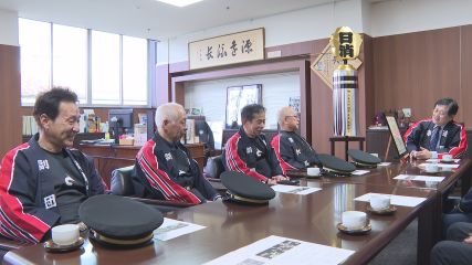 遠野市消防団がこのたび消防団最高の栄誉とされる日本消防協会「特別表彰まとい」を受章し、きのう市長に喜びを報告しました。江戸時代の火消しの象徴である「まとい」から名づけられたこの表彰は、全国消防操法大会への出場経験や活動が優秀な消防団に贈られるもので、日本消防協会が実施しています。遠野市消防団は日ごろから訓練に励み、平成28年度には岩手県消防操法競技会のポンプ車の部で優勝、その後も上位に入賞するなど輝かしい成績を収めています。また平成20年には他の消防団の模範となる活動をしているとして、日本消防協会表彰旗も受章していることなどから、全国2,200ある消防団から10団体にのみ表彰される「特別表彰まとい」を受章しました。きのうは、遠野市消防団の阿部和美団長をはじめ4人が市役所を訪れ、多田市長に受章の喜びを報告しました。多田市長は「これまで積み上げてきた先輩方をはじめ遠野市の総力を挙げて頂いた賞だと思う感無量です」と栄誉を称えていました。