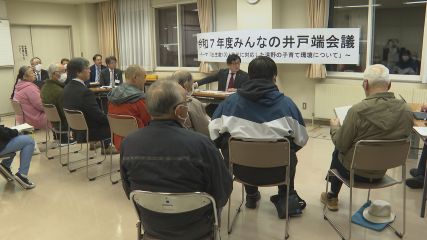 市長と市民が意見を交わす「みんなの井戸端会議」がきのう宮守町で開かれました。「みんなの井戸端会議」は市民が感じている地域課題などについて市長が直接話を聞き、今後の市政運営の参考にしようと開催されています。今回は「出生数100人時代に対応した遠野の子育て環境について」をテーマに開かれており、きのうは市民13人が参加しました。参加者からは「小中一貫校の設置という話があるが、保護者に対する情報提供を細かく行い、一緒に話し合いながら教育環境をつくってほしい」「卒業制作の作品が飾られているなど思い出が詰まった校舎でもあると思うので、統合する際には残された校舎の利活用についても合わせて考えてほしい」と意見が出されました。多田市長は「情報発信はこれからもしっかり行っていく。校舎に飾られている卒業記念品を残すなど活用を探っていく」と答えていました。このほか出会いの場づくりや結婚相談事業の必要性についても多くの意見が寄せられていました。なお、井戸端会議は、きょう27日・金曜日附馬牛地区センターで最終日を迎えます。