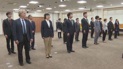 また遠野市地域おこし協力隊に対する辞令交付もきのう市役所本庁舎で行われました。今年度新たに遠野市地域おこし協力隊に加わるのは佐藤大樹さんと村井正志さんの2人です。式では多田市長から「よろしくお願いします」の言葉とともに辞令書が手渡されました。新規隊員の2人はビールの里次世代ホップ農家として活動します。全員に辞令書を手渡した多田市長は、「さらに自分の夢を叶えるために前向きに取り組んでもらいたい」と隊員を激励しました。今年度遠野市で活動する地域おこし協力隊員は18人で、農業やジビエ地域の魅力発信などそれぞれの専門性を生かした取り組みが進められます。