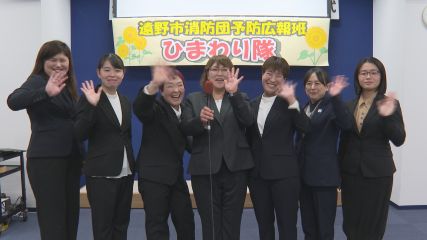 4月1日に設置された遠野市消防団予防広報班への辞令交付式がきのう総合防災センターで行われました。消防団の辞令交付とあわせてお伝えします。はじめに行われた消防団の辞令交付式では、退団する分団長3人と昇格となった分団長3人に辞令が手渡されました。退団する分団長は、第3分団長の及川一男さん、第4分団長の菊池常保さん、第8分団長の林崎清吾さんです。また分団長に昇格したのは、高橋篤分団長糠森長一分団長田中秀一分団長です。続いて、4月1日付けで予防広報班が発足したことに伴う辞令交付が行われました。予防広報班愛称「ひまわり隊」は、女性の強みを生かしこれまで活動の少なかった予防広報に力を入れ、消防団の存在意義や活動の魅力を伝えようと発足されました。今後は、これまで婦人消防協力隊で行ってきた業務の継続をはじめ、子どもたちに紙芝居や消火器の使い方を教える予防活動のほか、団行事の運営や発信を行う広報活動など幅広い活動を展開していきます。予防広報班の及川はるみ班長をはじめ8人に辞令を手渡した阿部和美団長は、「遠野市から火災が無くなるように、予防活動に力を入れてほしい」と今後の活躍に期待を寄せていました。