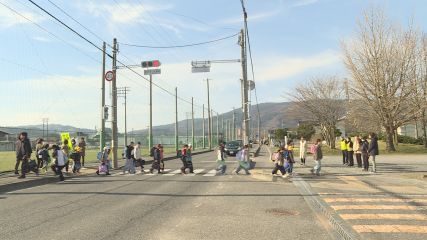 新学期を迎えた遠野北小学校では、きょうから集団登校が行われました。遠野北小学校では入学したばかりの1年生に通学路と交通ルールを覚えてもらうため、毎年この時期に上級生と下級生が一緒に登校しています。きょうから始まった集団登校では、上級生や保護者が1年生に付き添いながら登校していました。また学校近くの横断歩道には午前7時半ごろから松崎町地域教育協議会や、さわやかガード隊などのメンバーが立ち、「おはようございます」と声をかけながら児童を見守っていました。なお現在実施中の春の全国交通安全運動と春の地域安全運動では、子どもをはじめとした歩行者の安全確保や運転時の「ながらスマホ」根絶などを呼びかけています。