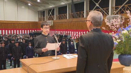 遠野高校できょう令和8年度の入学式が行われました。遠野高校の入学式では、在校生の演奏と、保護者などの拍手に迎えられ、少し緊張した表情で新入生が入場しました。今年度の新入生は県内外から101人となっています。式では、自分の名前が呼ばれた新入生が返事をして、松田隆宏校長に向かい一礼しました。15秒そして全員の名前が呼ばれたあと松田校長は「全員の入学を許可します」と宣言し式辞を述べました。18秒このあと新入生を代表して遠野中学校出身の八重樫颯人さんが宣誓を行いました。15秒式の最後には在校生が登場し、100年以上にわたって歌い継がれている遠野高校の校歌を新入生に披露しました。14秒遠野高校は今年度、新入生101人を加えた全校生徒307人で、創立125年目のスタートを切りました。