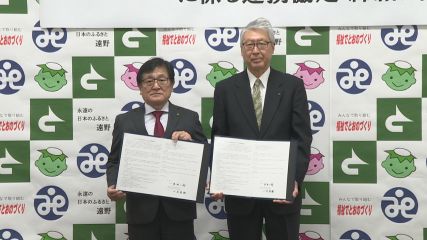 遠野市と遠野市社会福祉協議会がきのう、第2次「新たな地域支え合い」に係る連携協定を締結しました。市役所本庁舎で行われた連携協定の締結式には、多田市長や遠野市社会福祉協議会の小友善衞会長などが出席しました。今回締結された第2次「新たな地域支え合い」に係る連携協定は、地域共生社会の実現に向けて、住民相互の支え合いによる地域づくりをより一層推進していこうと結ばれるものです。今後は遠野市が地域運営組織と丸ごと相談員の協働を支援し、遠野市社会福祉協議会は相談支援体制の充実や、専門性の高い人材の確保・育成支援などの役割をそれぞれ担います。協定書にサインした多田市長と小友会長は互いの連携を強化し、地域福祉を一体的に推進していく決意を新たにした様子でした。