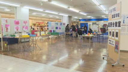 遠野ショッピングセンターとぴあ1階では現在、花巻清風支援学校遠野分教室の作品展が開かれています。この作品展は、児童・生徒たちが1年間の学習で制作してきた作品を多くの人たちに見てもらいたいと毎年開かれています。児童・生徒たちはクレヨンや絵具を使い表現した絵画や紙ねんど、物を包む時に使用する緩衝材などを使った工作に取り組んできました。先月31日からスタートした作品展では、児童・生徒が自由な発想と工夫を重ねながら作り上げた「プチプチアート」や木の板にくぎを打った「コリントゲーム」などといった作品が所せましと並んでいます。そしてきょうは小中学部の児童・生徒あわせて16人がとぴあを訪れ、自身の作品を見学しました。また児童たちはとぴあを訪れた人たちにも自分たちの力作を見てもらおうとチラシを配る様子も見られました。花巻清風支援学校遠野分教室「はなせいさくひんてん17色のパレット」は、来週12日・木曜日の午後1時までとぴあ1階で開催されています。