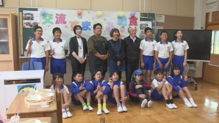 遠野産の食材を使った給食を児童と生産者、関係者が一緒に食べる「交流すまいる給食」が、きのう土淵小学校で開かれました。交流すまいる給食は、新鮮で安心安全な遠野産食材の魅力や食文化への理解を深めるとともに、給食を支える人たちとの共食交流により食育を推進しようと、遠野市学校給食センターが開いています。土淵小学校で開かれた今年度1回目の交流会には、「きくらげ」を生産する工藤あつ子さんや市内の学校給食に食材を提供している夢産直かみごうの似田貝和成店長が招かれ、6年生の教室で一緒に給食を食べて交流しました。献立は、工藤さんが育てた生のきくらげを使ったみそ米粉麺や遠野産のピーマンを使ったチンジャオロースーなど遠野産の食材がたっぷり使われています。児童たちは、給食を美味しそうにほおばり、工藤さんにきくらげのことを質問したり普段お世話になっている給食センターの調理員さんから話しを聞いたりしながら交流していました。また、きのうの献立は、市内の小中学校で提供されています。交流すまいる給食は、今年度あと2回開催され、次回は10月17日に鱒沢小学校で予定されています。