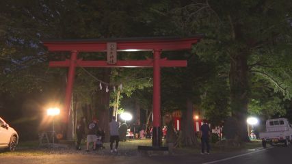 青笹町の六角牛神社で先週土曜日に宵宮祭が行われ、夜の境内が多くの人でにぎわいました。六角牛神社は250年以上前に創建されたと伝えられ毎年この時期に宵宮祭を行っています。本殿でははじめに六角牛神楽の「御神楽」が披露されました。この「御神楽」は、一時期伝承が途絶えていましたが保存会が20数年ぶりに復活させ、この日が復活後初めての披露となりました。続いて青笹しし踊りと六角牛神楽の奉納が行われ、訪れた人たちは宵宮ならでは雰囲気の中で、力強い演舞や華やかな舞に見入っていました。またこの日は、上糠前青年部が焼き鳥や豚汁、飲み物を無料で振る舞ったほか、豪華賞品をかけたビンゴ大会も催され祭りを盛り上げました。青笹町第2行政区自治会の小水内秀一会長は「若い世代に託すのではなく、続けやすい環境を自分たちの世代が作ってこのお祭りを後世に伝えていきたい」と話し、伝承に向けた思いを語っていました。