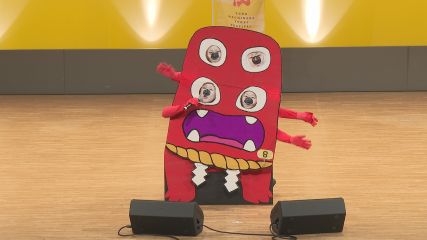 市民センター大ホールとホワイエでは、「第3回妖怪なりきりのど自慢thefinal」と遠野テレビフェスタが産業まつりと同時開催し、大きな盛り上がりを見せました。今年が最後となる「妖怪なりきりのど自慢」は遠野なんかやってみよう会が化けて、歌って、笑ってをコンセプトにおととしから開催しており、出場者が妖怪になりきってカラオケを歌い、そのなりきり力や歌唱力を競います。ことしののど自慢には市内や盛岡市のほか遠くは宮城県や岡山県などからこれまでの最多となる10組が出場しました。出場者たちは「雪女」や「唐笠おばけ」、遠野市観光PRキャラクター「イカイもん」といった妖怪になりきって自慢の歌声を響かせましたまた、この日の審査は観客の投票によって行われ、その結果、「イカイもん」になりきって「遠野物語」を熱唱したくれつボーずが優勝に輝きました。また産業まつりと同時開催した遠野テレビフェスタ2025では、利用者に日頃の感謝を伝えようと遠野テレビのスタッフや専門チャンネルの担当者たちが豪華賞品が当たる抽選会やブースを構えイベントを盛り上げました。さらにeスポーツ体験コーナーでは子どもたちが積極的にパソコンに触れてeスポーツを体験するなど会場はにぎわいを見せていました。