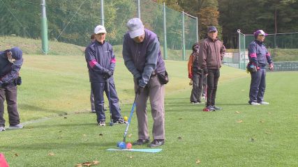 第38回南沿岸ブロック会員交流グラウンド・ゴルフ大会が、おととい遠野運動公園で開かれました。この大会は、県グラウンド・ゴルフ協会南沿岸ブロックの会員が一堂に会して、親睦と交流を深め健康づくりにつなげようと、岩手県グラウンド・ゴルフ協会が主催しています。大会には遠野と宮守のグラウンド・ゴルフ協会をはじめ、大船渡市や陸前高田市から130人あまりが出場しました。開会式でははじめに県グラウンド・ゴルフ協会の佐々木豊秋会長が「お互いに助けあいながら楽しみましょう」とあいさつしたあと、来賓の多田市長と遠野市体育協会の熊谷義弘会長などが「始打式」をして、大会がスタートしました。大会は個人戦で行われ1チーム5人から6人で3ラウンド24ホールを回り、合計打数の少なさを競いました。出場した選手たちは、一緒に回る選手と声をかけあいながら楽しくプレーし、交流の輪を広げていました。