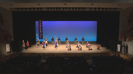 14回目となる遠野市郷土芸能共演会が今週日曜日市民センター大ホールで行われました。この催しは、市内の多様な郷土芸能団体の交流と継承を目的に開催されていてことしは7団体が出演しました。共演会は宮守町の和太鼓和からスタートし、力強い太鼓の音が響きわたり会場の雰囲気を一気に高めました。この他、石上神楽や似田貝神楽、土淵しし踊りなど、それぞれがこれまで伝承してきた舞を披露しました。また今回は岩泉高校の郷土芸能同好会を招待し、中野七頭舞がお披露目されました。さらにホワイエではポチ袋づくりワークショップや出演者と一緒に写真を撮って交流するブースが設けられ、訪れた人たちは伝統文化に対する関心を高めていた様子でした。なお、第14回遠野市郷土芸能共演会の模様は、後日遠野テレビの番組で放送する予定です。どうぞお楽しみに。