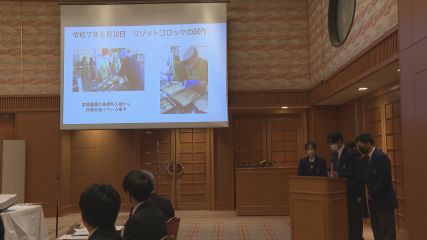 緑峰高校の新商品開発成果発表会が、先週水曜日にあえりあ遠野で開かれました。緑峰高校はブランド力向上と生産技術科の生徒が育てた「緑峰米」の認知度アップに向けて、海外でも受け入れられる新商品の開発に取り組んできました。発表会では情報処理科の2年生4人が緑峰米のリゾットやリゾット入りコロッケについて、春頃からどのように開発を進めてきたのかを説明しました。それぞれの食品は県内外のプロから指導を受けつつ、味のバリエーションを増やしながら試作を重ねてきました。またリゾットのラベルはAIを活用してデザインのたたき台を作り、作成したことも伝えられました。発表のあとはチーズ・トマト・海鮮のリゾットとリゾット入りコロッケの試食が行われ、出席した多田市長や市職員などの関係者が味を確かめました。試食した人たちは素材の良さをいかした味付けにとても満足した様子でした。なおリゾット入りのコロッケは、来年1月に台湾のスーパーマーケット裕毛屋で開かれる遠野市の物産展で生徒たちが販売します。