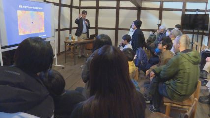 世界的に活躍する宇宙の研究者を講師に招いた「ホンマにすごい!宇宙!ウインター」が先週土曜日こども本の森遠野で開かれました。この講座は同じ県内にある奥州市で宇宙に関する研究が行われていることをきっかけに、遠い存在に感じがちな「宇宙」について親しみを持ってもらおうとこども本の森遠野が主催し、今回で2回目の開催となります。前回は小学生とその保護者が対象でしたが、一般からの参加希望が多く寄せられたため今回は年齢制限を設けずに開催され、この日は市内外からおよそ30人が参加しました。講師を務めたのは2019年に世界の仲間と協力してブラックホールの観測にはじめて成功した国立天文台水沢VLBI観測所の本間希樹所長です。講座では本間さんがブラックホールや宇宙のことについてわかりやすく解説しました。ブラックホールは非常に小さな天体であるため、観測に使う電波望遠鏡の性能は人間の視力10万に相当することなどを紹介すると、参加した人たちは驚きながら本間さんの話に耳を傾けていました。さらにブラックホールの周囲にある「事象の地平面」に一度入ると、吸い込まれてしまい光の速さでも抜け出せないことなどその特徴についても説明しました。講座の後半には質問コーナーが設けられ、「ブラックホールに吸い込まれたらどうなるか」「なぜ宇宙にブラックホールが存在するのか」といった質問が寄せられ、参加した人たちは本間さんの丁寧な説明に熱心に聞き入っていました。なお、こども本の森遠野では今後も自然科学をはじめ幅広いテーマの講座を開いていく予定ということです。