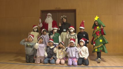 子どもたちに楽しみながら英語に親しんでもらう「英語で遊ぼう!Englishキャラバン」が宮守児童館と遠野児童館で行われました。Englishキャラバンは、グローバル人材の育成を目的に英語に対する興味や関心を高めてもらおうと遠野市からの委託を受け遠野市教育文化振興財団が実施しています。この日宮守児童館で講師を務めたのは、キャラバン隊メンバーのディーンさんと谷渕眞理子さんです。今回は12月の開催ということで宮守児童館を利用している小学1年生から3年生の17人が、サンタクロースの帽子をかぶって参加し、はじめにクリスマスにちなんだ人物や品物を3つのヒントを手掛かりに当てる「スリーヒントクイズ」を行いました。児童たちは講師が話す英語のヒントに耳を傾けながら英単語の意味を学び、楽しそうにクイズに挑戦していました。続いてクリスマスに関する本の読み聞かせが行われ、子どもたちは本を通してクリスマスの風習や、「トナカイ」「ソリ」といった英単語を物語を楽しみながら自然に学んでいました。続いてきのう遠野児童館で行われたEnglishキャラバンの様子をお伝えします。この日はキャラバン隊メンバーのビリーさんと谷渕眞理子さんが講師を務め、遠野児童館を利用している小学1・2年生およそ15人が参加しました。この日も「スリーヒントクイズ」とクリスマスに関する本の読み聞かせが行われ、子どもたちは楽しみながら英語に親しみました。このうちクリスマスに関する本の読み聞かせでは、児童たちは本を通してクリスマスの風習や英単語などについて理解を深めていました。なお遠野市教育文化振興財団では今後も児童館や児童クラブなどを巡回しながらEnglishキャラバンを開催していくということです。