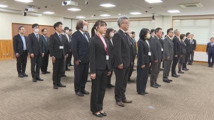 新年を迎えきょうが仕事始めという人も多かったのではないでしょうか。官公庁はきょうが仕事始めとなりました。遠野市役所では市役所本庁舎に市職員が集まり仕事始めの式が行われました。式では多田市長が「ことしは去年頑張って来たことが実になるように継続して努力していきたい」「タイミングをしっかり見てスピードを上げていくことを意識し、同時に健全財政をしっかりつくっていく」と訓示しました。市職員たちはことしも市民に寄り添い業務に取り組んでいこうと決意を新たにした様子でした。