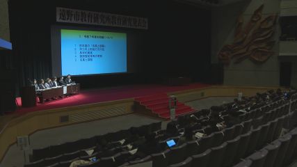 遠野市教育研究所による教育研究発表会が、きのう市民センター大ホールで開かれました。この発表会は、市内小中学生の学力向上に向けた研究成果と課題を確認し来年度の方向性を共有することで、遠野市の教育向上に役立てようと遠野市教育研究所が毎年開いています。発表会でははじめにタブレット端末を活用した授業の在り方などの研究を行うICT教育部会が児童生徒の情報活用能力アンケート結果や業務効率向上のためのDX化について報告しました。続いて遠野・遠野東遠野西の各中学校区で学力向上のために取り組んだ成果や課題などが発表されました。このうち遠野中学校区では、児童・生徒の目指す資質・能力を「表現力の育成」に定め自分の考えを表すための工夫と学び合いの工夫の2つの視点から授業改善に取り組んだことが伝えられていました。発表を聞いた教育研究専門員の小向敏夫さんは、「各中学校区・学校で授業改善を中心に学力向上の取り組みをリードしていただきました。」「児童・生徒に学習の見通しを持たせる工夫や根拠を明確にし、自分の言葉で表現する活動は主体性と学びの質を高める重要な実践でした」と講評を述べました。なお発表会のあとは中学校区ごとによりよい教育環境の充実に向け、今年度の取り組みの振り返りと来年度の方向性について意見を交わしたとのことです。