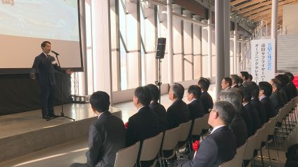 空気圧機器の世界トップシェアを誇るSMCが、東工業団地に建設を進めていた「遠野サプライヤーパーク」の竣工を記念し、きのうオープニングセレモニーが開かれました。この施設はSMCに原材料や部品などを供給する主要な企業を一カ所に誘致することで、生産の効率化や納期短縮、事業継続計画の強化などを図る拠点の1つとして整備されました。きのうのオープニングセレモニーには、SMCの田芳樹代表取締役社長や達増拓也岩手県知事、多田市長などが出席し運用開始を祝いました。田代表取締役社長は「サプライヤーパークは生産の迅速化にとどまらず、海外の企業からもぜひ見にきたいと関心を持たれているので地域活性化にもつながると思う」と、話していました。セレモニー終了後は出席者たちがサプライヤーパークの中を周り、工場の見学や施設の特徴について説明を受けました。のべ床面積はおよそ7万9,000平方メートルで、現在は首都圏に拠点を置く企業をはじめとした18社が入っています。また入居する企業の雇用は500人ほどになるということです。