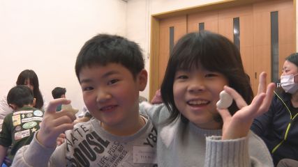 冬休み!ドキドキ勾玉作り教室が、今週12日・月曜日に遠野まちなか・ドキ・土器館で開かれました。冬休み中の恒例イベントとなっているこの教室は、市内の埋蔵文化財に理解を深め遠野の歴史を知ってほしいと市文化課が毎年開いています。教室には市内から30人を超える親子が参加し、子孫繁栄や五穀豊穣を願うアクセサリー「勾玉」を手作りしました。勾玉の材料には、縄文時代の装飾品として使用されていた加工しやすい石「滑石」が使われ、コンクリートブロックで少しずつ削りながら形を整え紙やすりで磨いていきます。参加した人たちは自分が思い描く形になるよう1時間かけて丁寧に整形していました。仕上げに紙やすりで石を磨くと、ピカピカのオリジナル勾玉が完成しました。およそ2時間もくもくと作業を続けた子どもたちは、勾玉作りを通じて縄文時代の歴史にも触れ埋蔵文化財への理解を深めた様子でした。