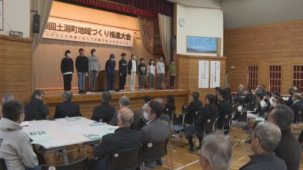 第39回土淵町地域づくり推進大会が先週土曜日に土淵地区センターで開かれ、地域の人たちが交流を深めました。この大会は、町民が一堂に集い顕著な功績を挙げた町民への表彰や情報交換などを通して、土淵町の発展を図ろうと毎年この時期に開催されています。はじめに主催者を代表して土淵町まちづくり協議会の安部全一会長が、「去年はクマの出没が相次ぐなど大変な年になりましたが、土淵小学校の児童を含む学童野球遠野市選抜チームの県大会優勝といった明るいニュースもありました。ことしも明るい年になるよう皆さんのご協力をお願いします」と、あいさつしました。続いて表彰式が行われ、県レベルの作品展などで優秀な成績を収めた町民を表彰する教育文化奨励や、各種競技の県大会で優勝した町民などを表彰する特別スポーツ栄光賞をはじめ40の個人・団体が表彰されました。続いて土淵小学校の6年生が「語りの力で生まれた遠野物語」と題し活動事例の発表を行いました。児童たちは「語り」によって代々伝えられてきた遠野物語や佐々木喜善などについて、これまで学習した内容をクイズを交えながら紹介し会場を盛り上げました。このほか野生動物写真家の佐藤嘉宏さんによるツキノワグマに関する講演や懇親会も行われ、参加した人たちは親睦を深めながらことし1年の土淵町の発展に向け思いを新たにしていました。