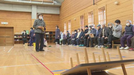 土淵町の高齢者学級講座「こがらせ大楽」の室内スポーツ大会が、今週火曜日に土淵地区センターで開かれました。この大会はこがらせ大楽に通う土淵町民どうしの交流と親睦を深めようと毎年開催されています。この日は、町内の老人クラブ合わせて7クラブから56人が参加しました。大会では参加した人たちが輪投げやミニゲートボールなどに挑戦し、仲間が好プレーを見せると拍手をしたり、笑顔を見せたりしながら楽しく交流を深めていました。またこの大会は今月末に開催予定のシルバー室内競技大会のリハーサルもかねていて、団体種目の「ボール送り」ではチームでルールを確認しながら息を合わせて練習に励んでいました。また大会の後には今年度のこがらせ大楽で活動した成果を振り返り閉講式も行われたということです。