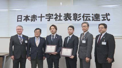 赤十字事業の進展に多大な貢献をした法人を表彰する日本赤十字社表彰の伝達式が、きのうとぴあ庁舎で行われました。多額の活動資金を寄付したとして表彰を受けたのは、小井口自動車工業とテラ、葵食品の3事業所です。伝達式には、小井口自動車工業の小井口幹専務取締役とテラの三浦一代表取締役が出席し、日本赤十字社岩手県支部遠野市地区長を務める多田市長から表彰状を受け取りました。日赤活動資金について、小井口自動車工業は平成15年から、テラは平成17年から長年協力しており、その累計額が20万円以上で50万円未満に与えられる銀色有功章を受章しました。多田市長は、日赤活動資金が災害時の被災者救護や防災・減災の普及啓発、ボランティアの育成など、命を救うさまざまな活動に役立てていることを伝え、理解と協力に感謝していました。遠野市では、令和7年度の活動資金募集について、目標額を越える429万5,000円の支援が現在寄せられているということです。