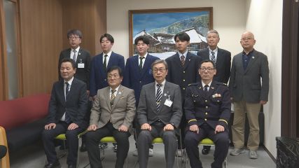 この春から自衛隊への入隊を予定している3人が、きのう市役所とぴあ庁舎を訪れ多田市長を表敬訪問しました。令和8年度遠野市から自衛隊への入隊予定者は4人です。表敬訪問には入隊予定者のうち及川汰駕さん、菊池唯斗さん、佐々木莉功さんの3人と、遠野市自衛隊協力会の会長など11人の関係者が出席しました。はじめに多田市長が、「色々なことがあると思いますが考え、楽しんで、力に変えていってもらいたいと思います」と入隊予定者に激励の言葉を送りました。続いて、遠野市自衛隊協力会の冨松浩昭会長から記念品として靴磨きや爪切りなどの身だしなみセットが3人に贈られました。このあと入隊予定者を代表して、松崎町の菊池唯斗さんが力強く決意を述べました。なお4人は来月下旬から、滝沢市の岩手駐屯地や宮城県の多賀城駐屯地に一般曹候補生や自衛官候補生として入隊する予定です。