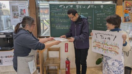 土淵町の日替わりシェフレストランでんパラの利用者数が、先週金曜日に1万人を突破しました。当日行われたセレモニーの様子が届いていますのでお伝えします。旧土淵中学校の校舎を活用しておととしオープンした「でんパラ」は、シェフが日替わりで交代しながら多彩なメニューを提供するレストランです。そんな「でんパラ」では先週3日・金曜日の正午ごろ、利用者1万人を達成しました。記念すべき1万人目は、この日初めて来店したという新潟県の結城庄栄さんです。結城さんにはペア食事券が贈呈されました。なお、立ち上げ当初からでんパラに関わっている大森友子さんは、オープンから1年10カ月での1万人達成について、「このレストランが土淵町や市内外の方々の目的地になるように、みんなで運営していきたい」と、話しています。