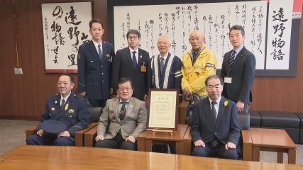 遠野市では交通死亡事故ゼロが500日間続いていることが評価され、きょう岩手県交通安全対策協議会から市に表彰状がおくられました。遠野市では、令和6年11月27日からきょうまで、交通死亡事故ゼロ500日を達成しその表彰式が市役所とぴあ庁舎で行われました。式には、県の交通安全対策協議会と遠野警察署員や遠野市の関係者が出席しました。そして、岩手県交通安全対策協議会の大釜範之事務局次長から、多田市長に表彰状が手渡されました。6秒表彰賞状を受け取った多田市長は、「500日死亡事故ゼロの継続は、遠野警察署や交通安全協会などみなさんで作ってきたので感謝しています」とお礼を述べました。これに対し、岩手県交通安全対策協議会の大釜事務局次長は、「運転手の一瞬の油断が事故につながるので、悲惨な交通事故死の撲滅につとめてほしい」と激励していました。24秒こうした中、岩手県内では今年に入って交通事故による死亡者数が15人で、昨年より10人多くなっています。現在、春の交通安全運動のため遠野警察署ではドライバーや歩行者に注意を呼びかけています。